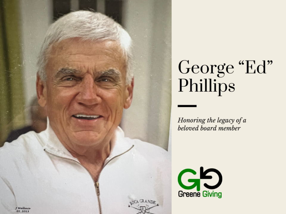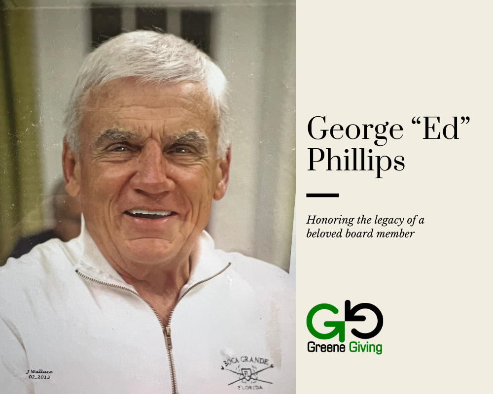 The Greene Giving community mourns the loss of George “Ed” Phillips, a beloved and inspiring member of our board, who passed away on October 20, 2024.